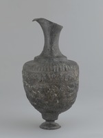 Die Bronzekanne ist eines der wenigen Exemplare, die mit Reliefschmuck verziert sind. Genrebilder sind in der hellenistisch-römischen Kunst allgemein sehr beliebt. Fischer sind durch realistische Züge und in der Regel durch ein einfaches gegürtetes Handwerkergewand (Exomis) gekennzeichnet. Der Künstler dieser Kanne hat in freier Größenrelation Landschaft, Figuren, Tiere und Geräte teppichartig auf die Reliefzone verteilt.